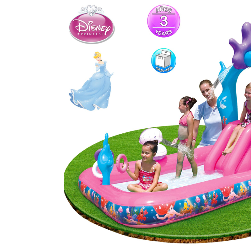 Bể bơi phao cầu trượt liên hoàn Disney princess 91051B thương hiệu Disney Princess Bể bơi phao liên hoàn có cầu trượt. Kết hợp nhiều trò chơi trong cùng một sản phẩm giúp cho bé vận động cả về thể chất cũng như trí tuệ.
