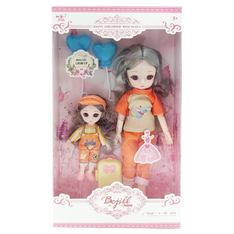 - Bộ sản phẩm gồm 2 búp bê (1 búp bê lớn, 1 búp bê bé), 1 vali mini siêu xinh và 2 quả bóng bay hình trái tim.