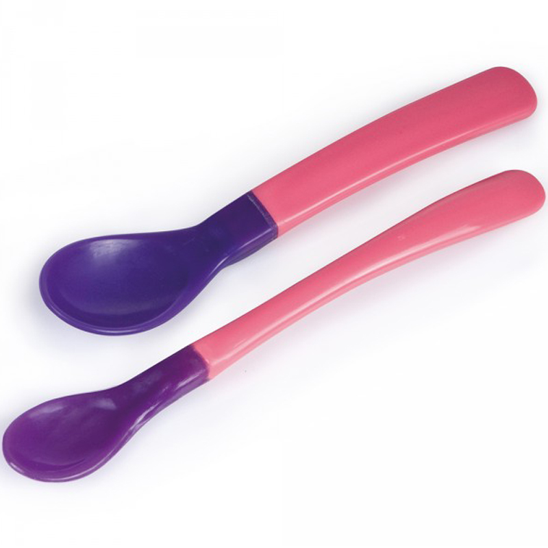 Tích hợp muỗng lòng mềm và cứng cho bé tập ăn uống dễ dàng, màu tím phối hồng đẹp mắt.