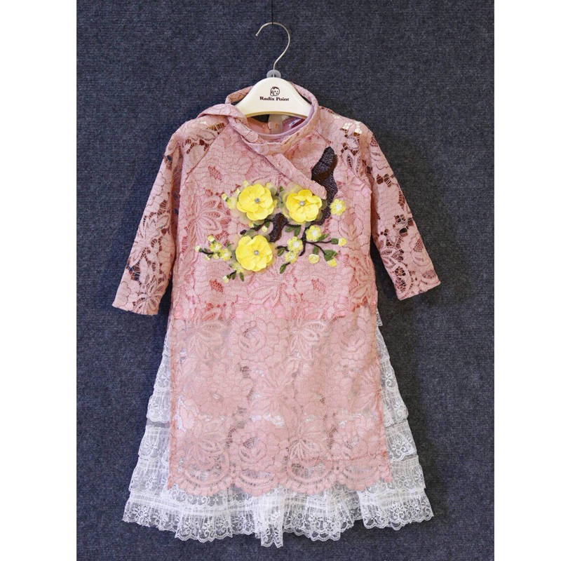 - Chất liệu: Vải ren, mang lại sự tinh tế, sang trọng tôn lên nét đáng yêu của bé khi mặc