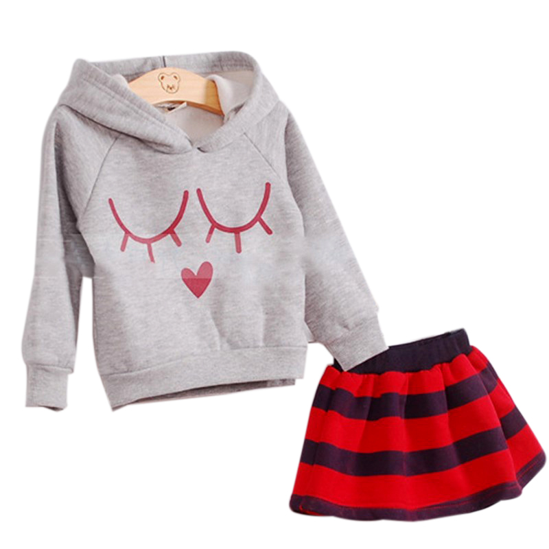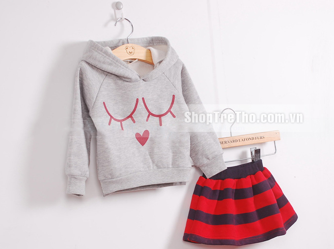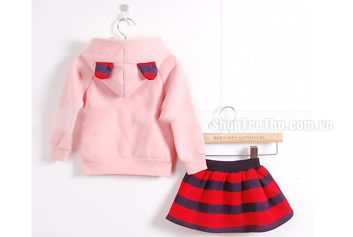 Bộ áo kèm váy chất liệu nỉ bông, kiểu dáng khỏe khoắn, năng động nhưng không làm mất đi vẻ nữ tính của bé