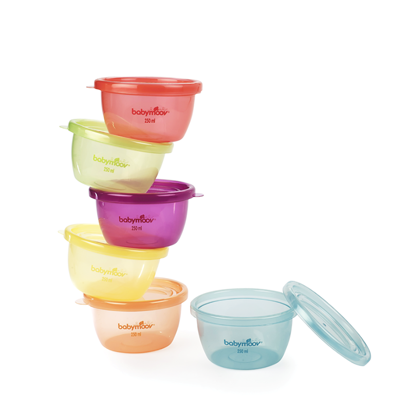 Bộ 6 bát chia thức ăn Babymoov BM00856 được làm từ chất liệu nhựa PP, không chứa BPA độc hại, với thiết kế tiện dụng hỗ trợ mẹ chăm sóc bé khi bắt đầu bước vào giai đoạn ăn dặm. Sản phẩm vừa dùng để trữ đông & rã đông thức ăn, cho bé ăn dặm trực tiếp & cũng rất tiện để mang đi du lịch.