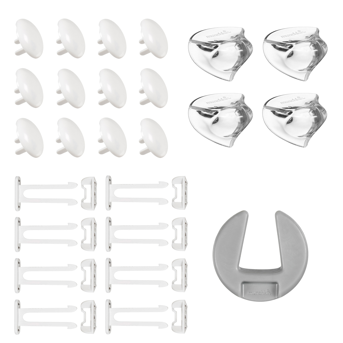 Các gia đình có trẻ nhỏ thường rất lo ngại với các đồ dễ vỡ, góc bàn, tủ hay những ổ điện. Thật không yên tâm chút nào, đặc biệt là với trẻ từ 1- 5 tuổi, độ tuổi của những tò mò, ưa thích khám phá, và vô cùng hiếu động. Tuy nhiên các bé không hề biết rằng xung quanh những đồ vật hấp dẫn ấy lại ẩn chứa biết bao nguy hiểm nếu không sử dụng đúng cách nạn có thể xảy ra bất cứ lúc nào. Bộ an toàn tổng hợp Munchkin 35040 sẽ giúp bạn chăm sóc bé tốt hơn. Bộ gồm 8 khóa an toàn cho ngăn kéo, 12 bịt ổ điện , 4 bịt cạnh bàn và 1 chiếc chặn cửa 2 chức năng cho bé được thoải mái vui chơi trong nhà mà không sợ tổn thương, trầy xước.