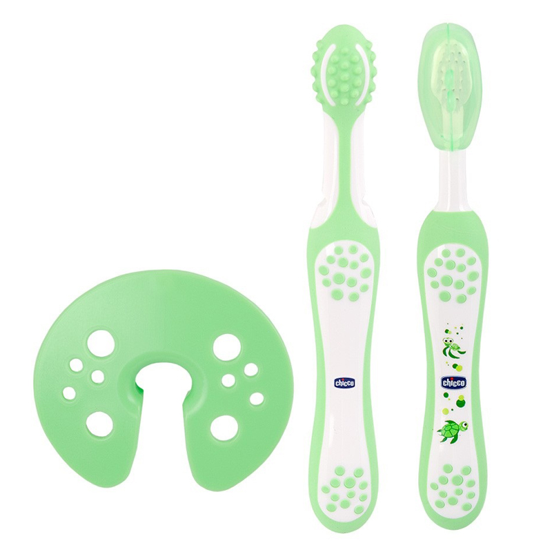 Khi răng sữa bé vừa mọc, các bậc cha mẹ nên chú ý tới việc vệ sinh răng miệng để giúp bé có hàm răng chắc khỏe và hình thành thói quen vệ sinh từ sớm. Bộ bàn chải hai bước Rùa con Chicco gồm: Bàn chải mát-xa lợi và bàn chải đánh răng - là 1 set hoàn chỉnh cho việc chăm sóc răng miệng của Bé.