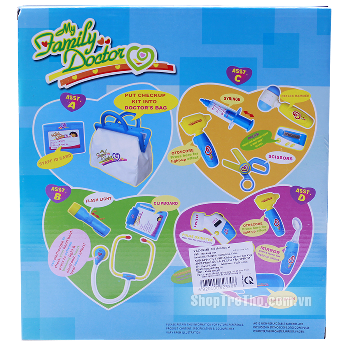 - Bộ bác sĩ Vbcare VBC-9933B được làm từ nhựa cao cấp, đảm bảo an toàn với sức khỏe khi bé chơi đùa.