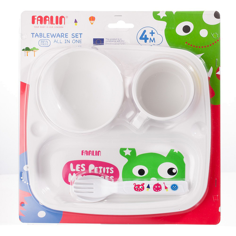 Bộ bát tập ăn Farlin PER-246 bao gồm đầy đủ các dụng cụ cho bé tập ăn dặm như bát, cốc, thìa, dĩa. Được làm từ chất liệu nhựa phíp cao cấp với các họa tiết vui mắt, vừa an toàn cho bé vừa giúp bé vui thích hơn khi tập ăn.