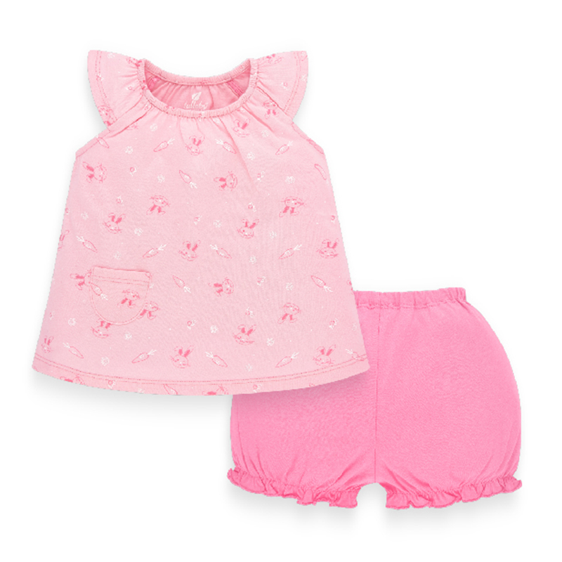 Bộ bé gái tay ngắn chun cổ Lullaby NH73B với họa tiết chú thỏ đáng yêu