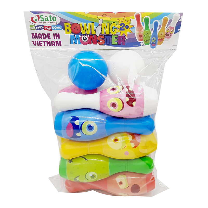 Bộ bóng Bowling Monster Sato 025 - Thử tài bé yêu (mẫu 1) với chất liệu nhựa nguyên sinh và sử dụng các hạt màu nhập khẩu, sẽ là đồ chơi thú vị cho bé từ 3 tuổi trở lên. Đồ chơi được làm bằng chất liệu nhựa an toàn, phù hợp với sở thích của trẻ để trẻ có thể thỏa thích vui chơi cùng bạn bè mọi lúc, mọi nơi.