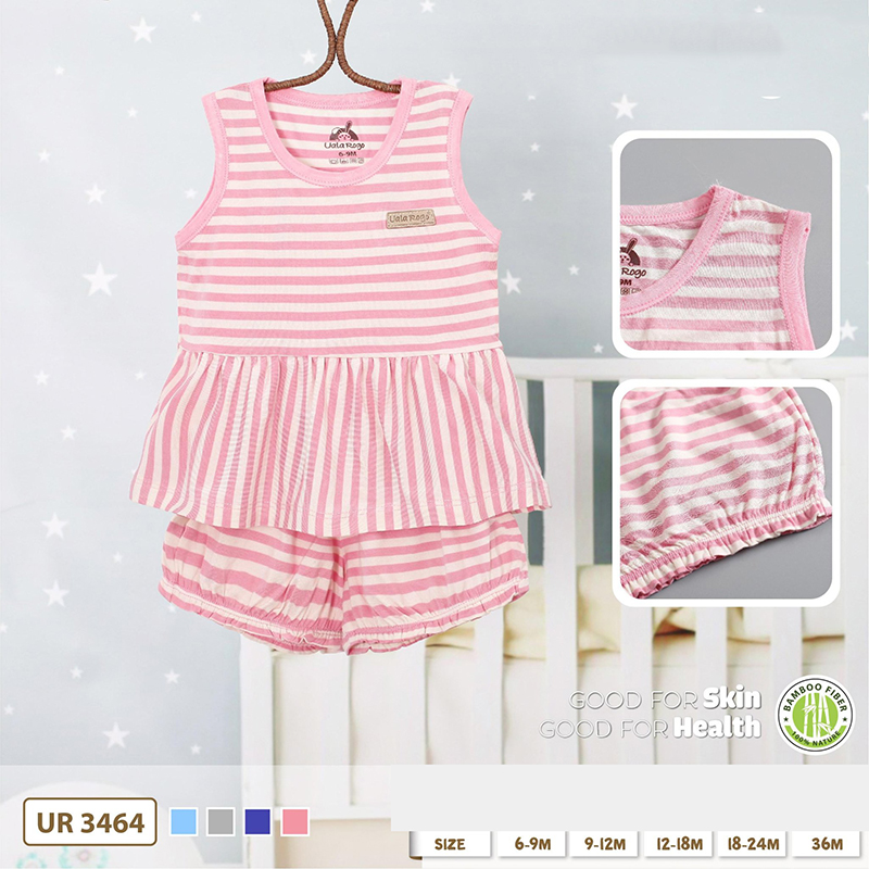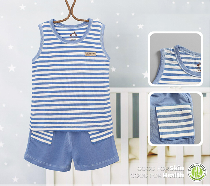 Bộ ba lỗ vải Bamboo kẻ ngang Uala UR3464 được may từ chất vải sợi tre thấm hút tốt hơn, kháng khuẩn, ngăn ngừa mùi ẩm mốc, an toàn tuyệt đối cho làn da của trẻ. Thiết kế có kiểu áo may nhúm tăng thêm nét đáng yêu cho bé gái và họa tiết sọc xanh mang đến nét khỏe khoắn cho bé trai.