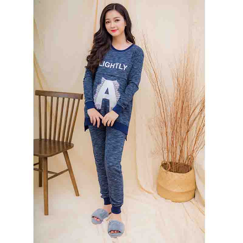 Bộ bầu cho bé bú in chữ Lightly Emum (xanh dương) với chất vải nỉ da cá đảm bảo giữ nhiệt, tránh việc "gió máy" cho các mẹ sau sinh, tránh bị bệnh hậu sản. Sản phẩm có thiết kế khóa để mở ra mẹ có thể cho bé ty dễ dàng mà vẫn đảm bảo kín đáo.