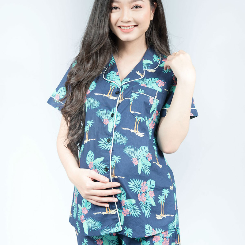 Bộ bầu pyjama kate tay ngắn quần dài xanh đậm Emum là một sản phẩm nằm trong bộ sưu tập thời trang đồ bầu xinh xắn và cá tính cho các mẹ được sản xuất và phân phối bởi hãng thời trang dành cho bà bầu Emum. Các sản phẩm đầm bầu Emum đều được làm bằng chất liệu vải nhập khẩu rất mềm mại không nhăn êm ái, đặc biệt rất mát mẻ khi mặc vào mùa hè