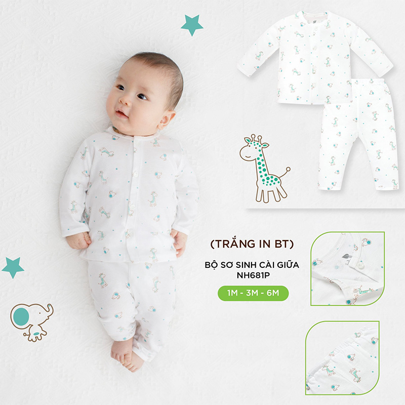 Bộ cài giữa dài tay Lullaby NH681P (trắng in BT)