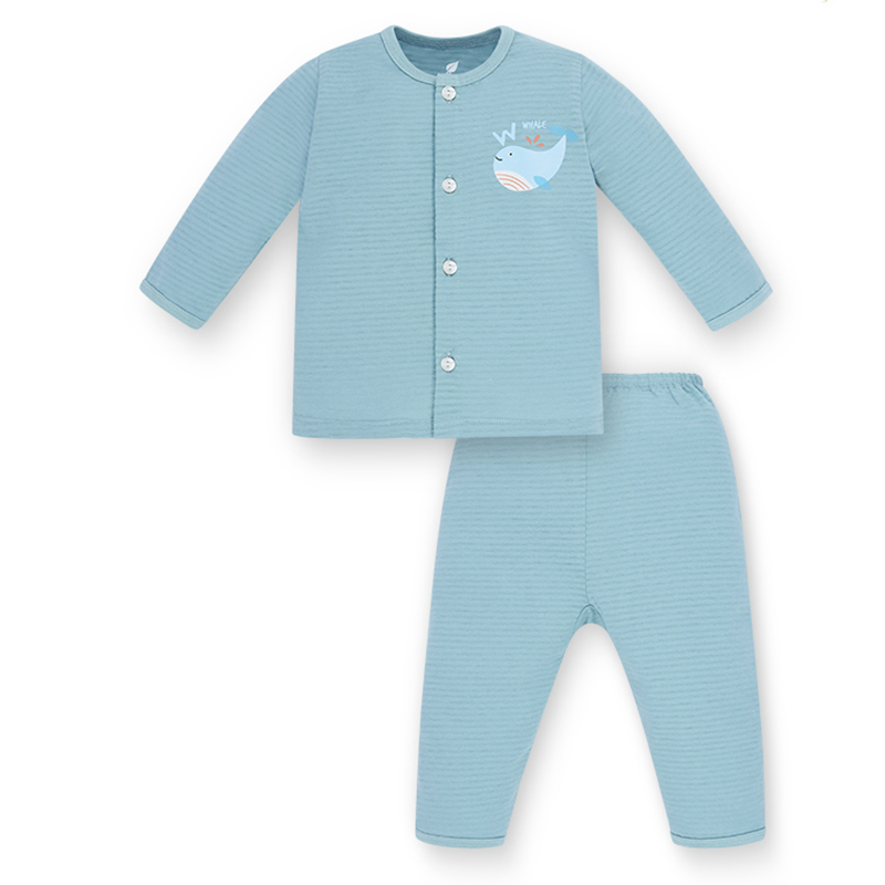 Bộ dài tay Lullaby màu xanh với thiết kế khuy cài giữa tiện lợi