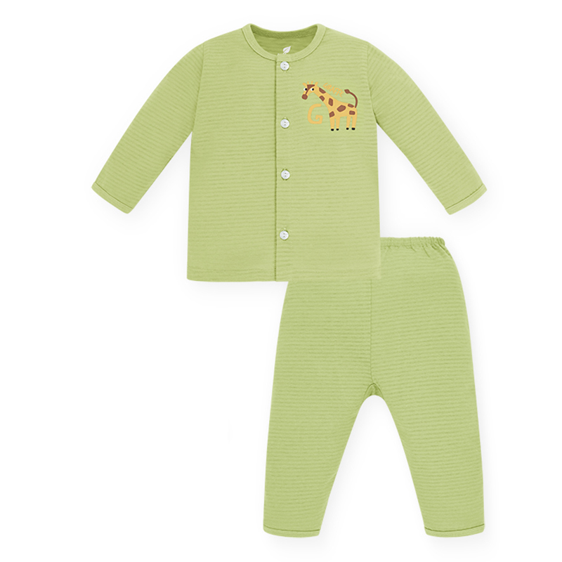 - Gồm: 1 áo cài giữa + 1 quần dài lưng chun
