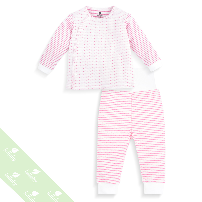 Bộ đồ cài lệch dài tay màu hồng Lullaby NH23-19 bao gồm 1 chiếc áo cài lệch màu hồng xinh xắn thiết kế theo phong cách chấm bi đáng yêu cùng 1 chiếc quần dài kẻ sọc ngang bo gấu giúp giữ ấm cơ thể của bé một cách trọn vẹn. Bộ sản phẩm đều được thiết kế bo gấu giúp ôm sát cổ tay và cổ chân nhờ vậy mà cơ thể của bé luôn ấm áp, hạn chế tối đa sự ảnh hưởng của không khí lạnh
