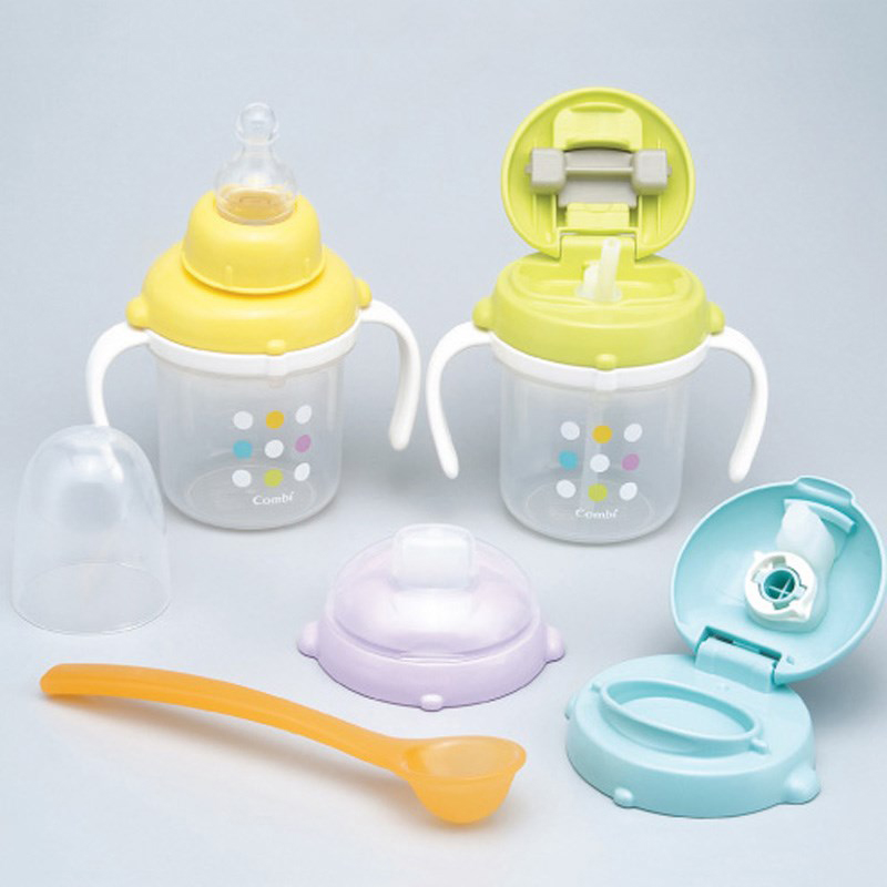 - Bộ ca tập uống Combi 13736 gồm hai cốc tập uống bước 1 bước 4; hai nắp ca bước 2 bước 3 và thìa uống.