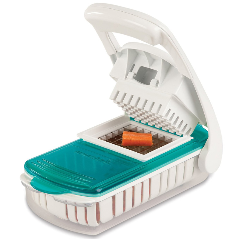 Dao cắt bằng thép không gỉ an toàn khi chế biến thực phẩm cho bé. Sản phẩm có nắp trượt dễ dàng đóng mở.