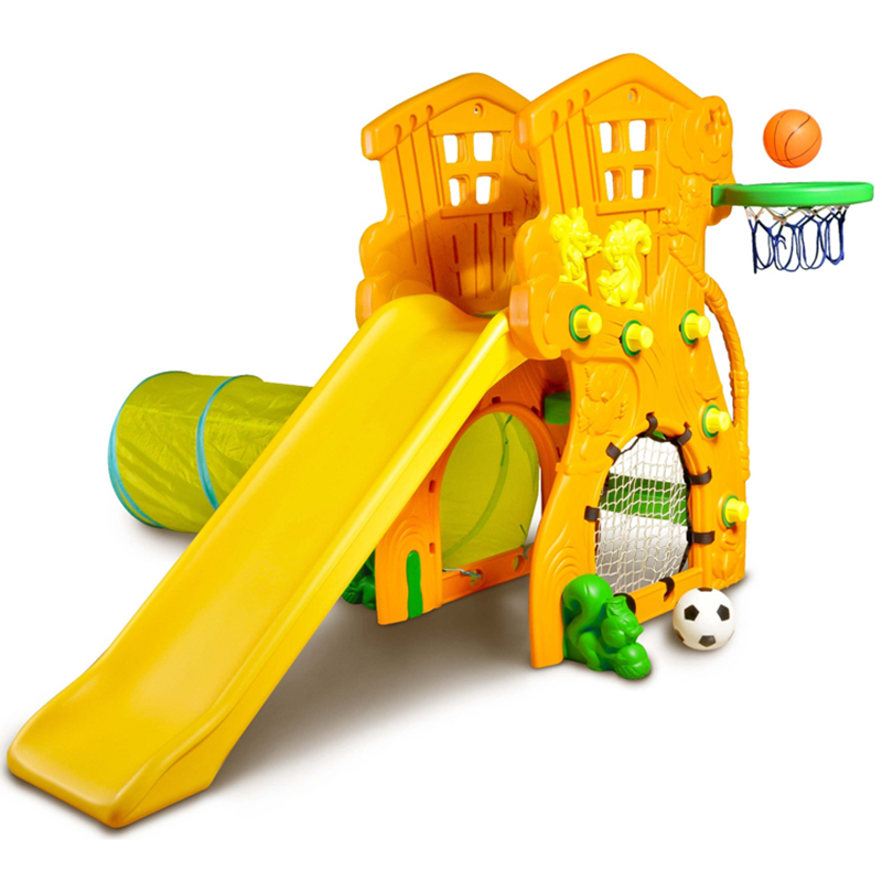 - Bộ cầu trượt liên hoàn với các trò chơi: cầu trượt, hầm chui, bóng rổ, bóng đá. Sự kết hợp nhiều trò chơi vận động trong một sản phẩm giúp bé chơi hoài mà không chán, nhiều bé có thể tham gia chơi hơn.