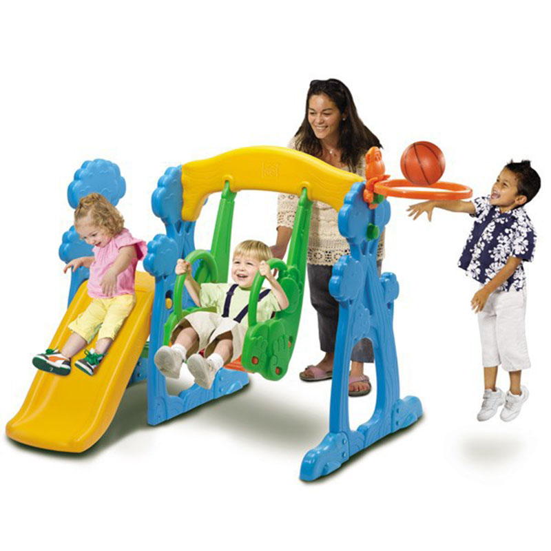 Bộ cầu trượt xích đu bóng rổ GU2023-03 giúp trẻ vui chơi sảng khoải, tăng cường vận động, rèn luyện sự nhanh nhẹn và khéo léo. Nhiều trẻ có thể cùng chơi chung sản phẩm giúp tăng cường sự giao tiếp giữa các bé với nhau, gần gũi nhau hơn. Bộ cầu trượt trẻ em có thể kết hợp với bể bóng cho bé để tạo thành bộ liên hoàn cầu trượt, xích đu, bóng rổ với nhiều lựa chọn khi chơi. Cầu trượt thích hợp đặt ngoài trời, trong nhà rộng.
