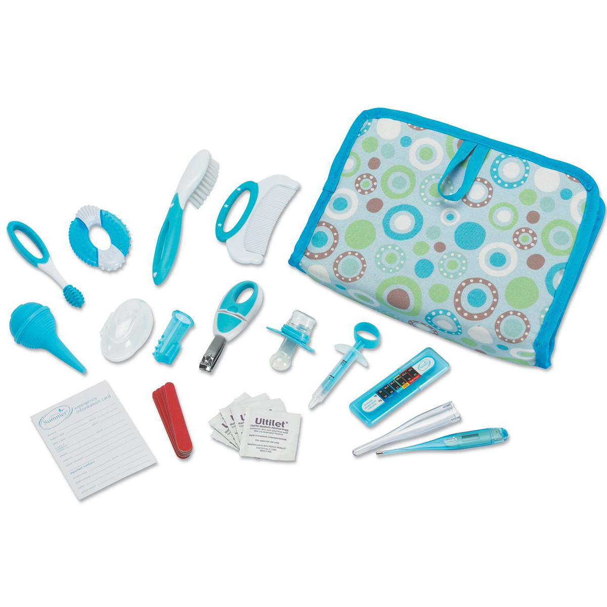 Chăm sóc bé yêu toàn diện với bộ chăm sóc bé của thương hiệu Summer. Trọn bộ sản phẩm 26 món bao gồm: Dụng cụ hút mũi, đo nhiệt độ KTS, gặm nước, đo nhiệt độ trán và hộp đựng, bàn chải ngón, núm vú , ống tiêm, lược, bàn chải, cắt móng tay, 6 dũa móng tay, matxa lợi, 5 bông cồn, thẻ thông tin khẩn cấp, một túi đựng màu xanh xinh xắn. Với bộ sản phẩm tiện dụng này, không chỉ giúp mẹ thuận tiện khi chăm sóc trẻ tại nhà mà còn có thể dễ dàng mang theo trong những chuyến đi xa.