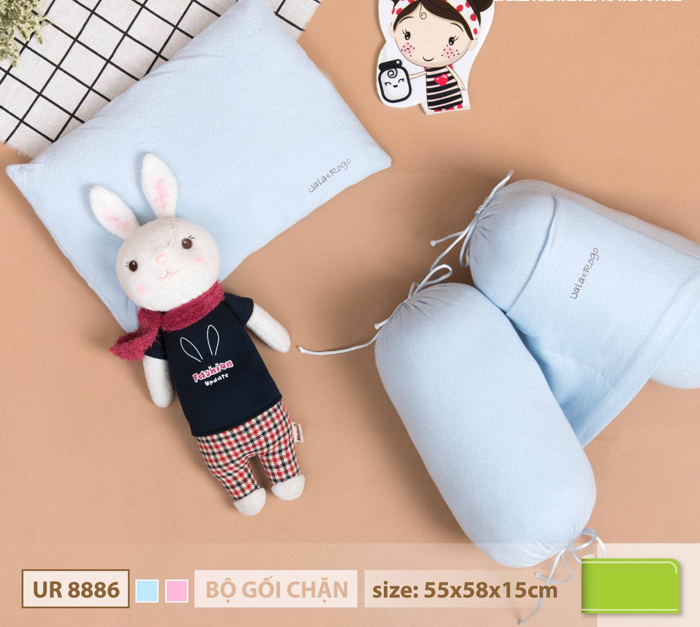 Bộ chặn cao cấp Uala & Rogo - UR8886 với ruột gối được làm từ bông Nano kháng khuẩn, mềm, thoáng khí và không mùi, ngăn ngừa tình trạng vi khuẩn phát triển dễ gây ra bệnh về hô hấp cho trẻ so với các loại gối chặn khác. Sản phẩm mang đến giấc ngủ sâu, thoải mái và không giật mình cho bé yêu của bạn.