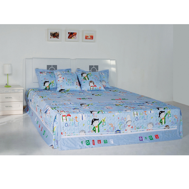 Nhẹ nhàng và cá tính là những gì có thể mô tả về bộ chăn ga gối này. Sắc xanh nhạt đi kèm với họa tiết "little boy" hiện đại rất phù hợp cho không gian phòng ngủ. Các chàng trai với nhiều nghề nghiệp khác nhau như: đầu bếp, cảnh sát... cùng với họa tiết chữ sẽ khiến con thích thú so với những kiểu ga giường quen thuộc. Đứng trước một chiếc giường “tấp nập” như thế này, hẳn cậu bé nào cũng sẽ bị kích thích thị giác, đặc biệt là với những trẻ ước mơ được trở thành chú cảnh sát giao thông hay phi công trong tương lai. Bộ sản phẩm được làm từ 100% cotton cùng khả năng thấm hút, nhanh khô và bền bỉ, giúp bé không bị bết mồ hôi khi ngủ. Có thể nói đây là sự lựa chọn hoàn hảo cho chiếc giường của trẻ.