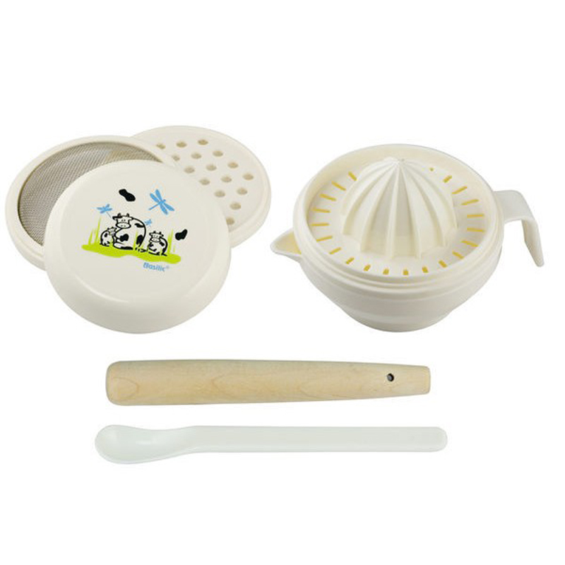 Khi trẻ đang trong giai đoạn ăn dặm, các bà mẹ thường bổ sung thêm chất dinh dưỡng cho trẻ bằng nhiều thực phẩm khác nhau. Để giúp việc chế biến món ăn dặm cho con nhanh chóng và không mất nhiều thời gian, Shop Trẻ Thơ xin giới thiệu tới các bạn bộ chế biến ăn dặm Basilic D122 giúp nghiền hoa quả tươi, lọc bỏ bã, xơ của thực phẩm. Bộ chế biến được làm bằng chất liệu nhựa an toàn, giúp chế biến được rất nhiều loại thức ăn cho bé, phù hợp với từng giai đoạn phát triển.