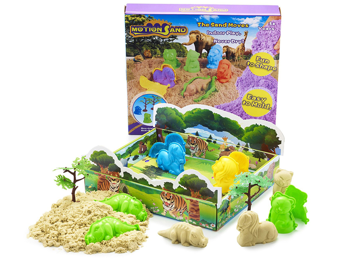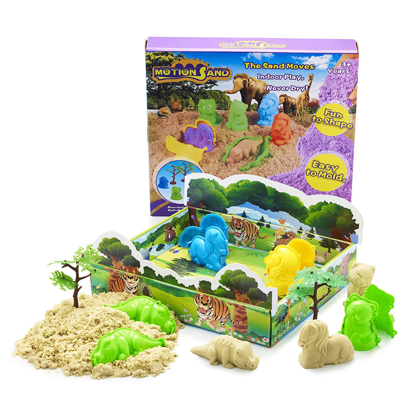 Với việc sử dụng cát động học có tính chất kết dính, dễ tạo hình mà không hề dính tay trẻ, bộ chơi cát Motion Sand tạo hình vườn thú và thú sẽ là món quà thú vị dành cho các bé trên 3 tuổi. Sản phẩm gồm 500g cát cùng với 4 khuôn nhựa hình: sư tử, mèo, cá sấu, voi và 2 mô hình cây để bé xây cho mình 1 vườn thú bằng cát vui nhộn.