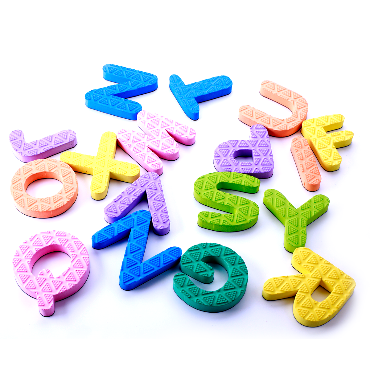 Bộ chữ cái 24 chữ ED013 gồm 24 chữ cái với nhiều màu sắc khác nhau dành cho các bé trên 3 tuổi, giúp bé nhận diện mặt chữ, phát triển khả năng tư duy. Chữ cái được làm từ chất liệu nhựa xốp “foam”, và EVA (Ethylene Vinyl Acetate) với tính năng mềm dẻo, nhẹ, linh hoạt, chịu va đập, không có hóa chất độc hại, an toàn, góc vuông không sắc nhọn.