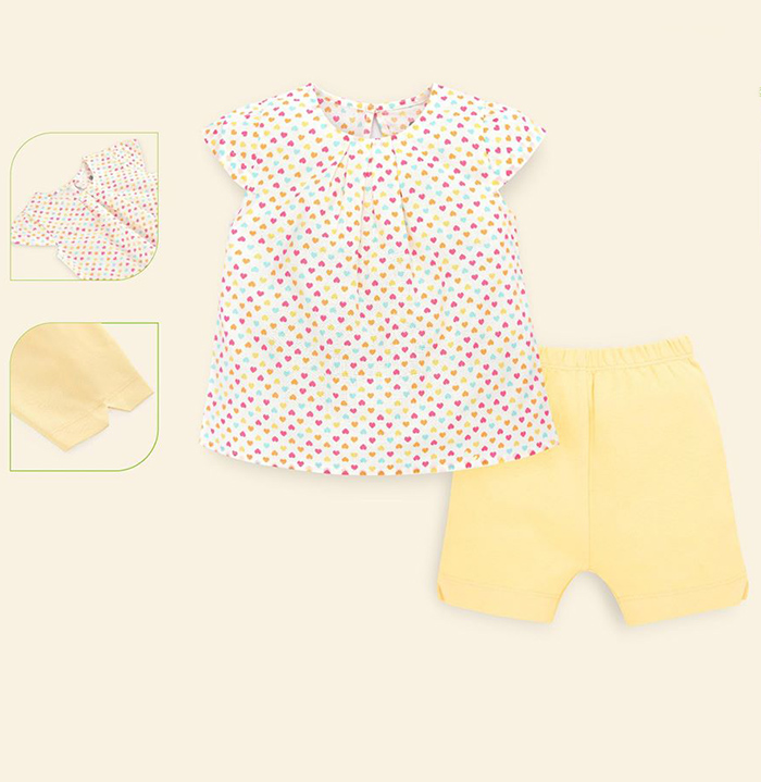 Bộ cộc tay chữ A bé gái với họa tiết hình trái tim kute