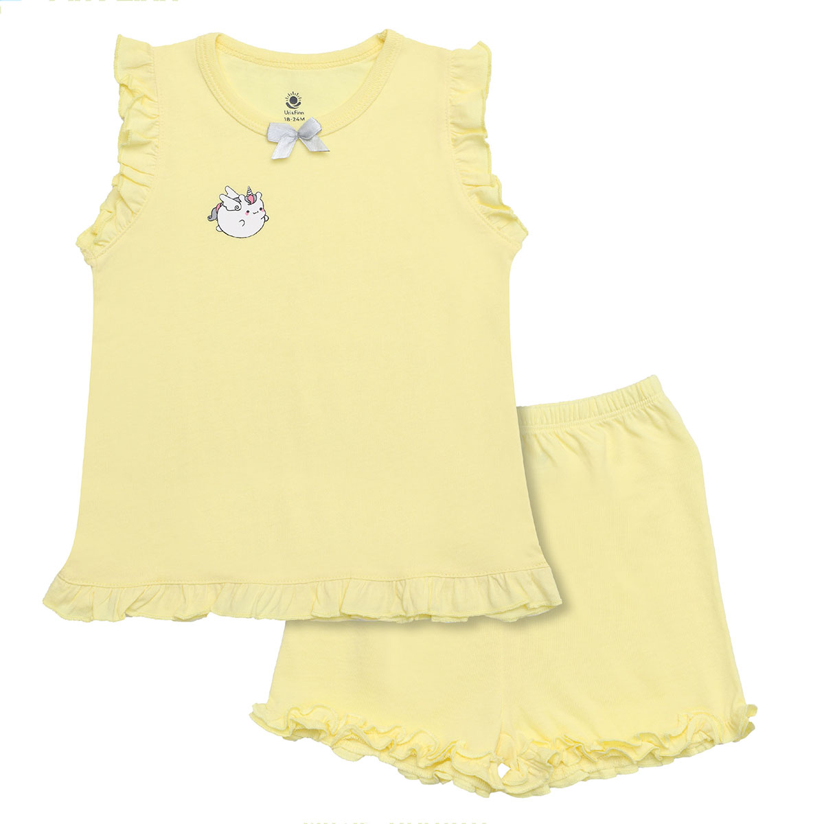 Bộ cộc sát nách bé gái Uri&Finn UBB1011 (vàng) với form dáng rộng, thoải mái, dễ mặc được thiết kế bởi chất liệu cotton mềm mại, thấm hút mồ hôi giúp bé tự do vẫn động, khám phá thế giới. Sản phẩm có đủ size dành cho bé từ 18 tháng trở lên.