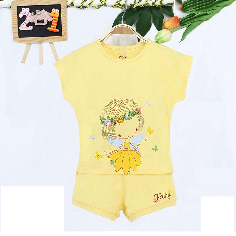 Bộ cộc tay DA370, DQ370 màu vàng in hình bé gái dễ thương