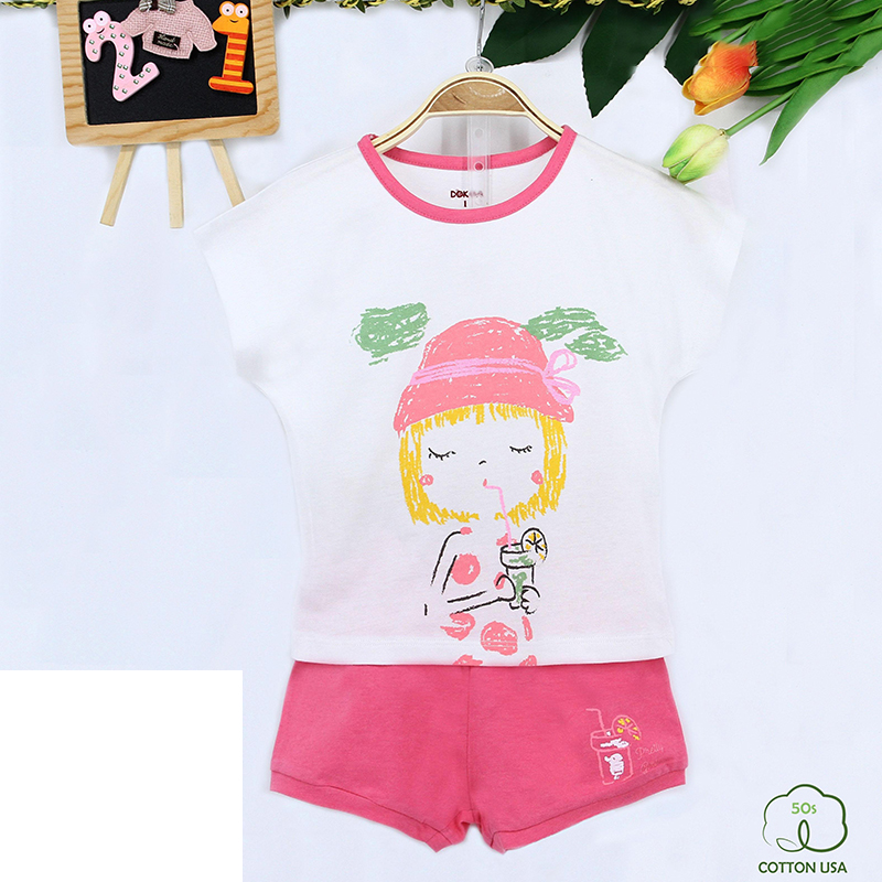 Bộ cộc tay DA370, DQ370 trắng hồng in hình bé gái dễ thương
