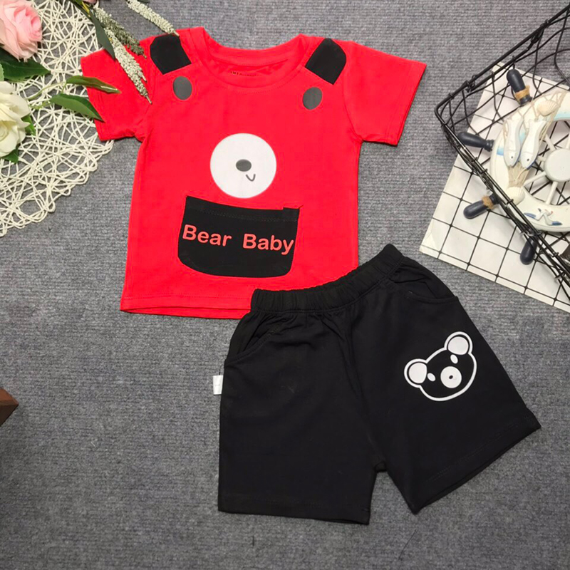 Bộ cộc tay bé trai in hình gấu (1-6T) - kiểu quần áo mùa hè với thiết kế khỏe khoắn cho bé
