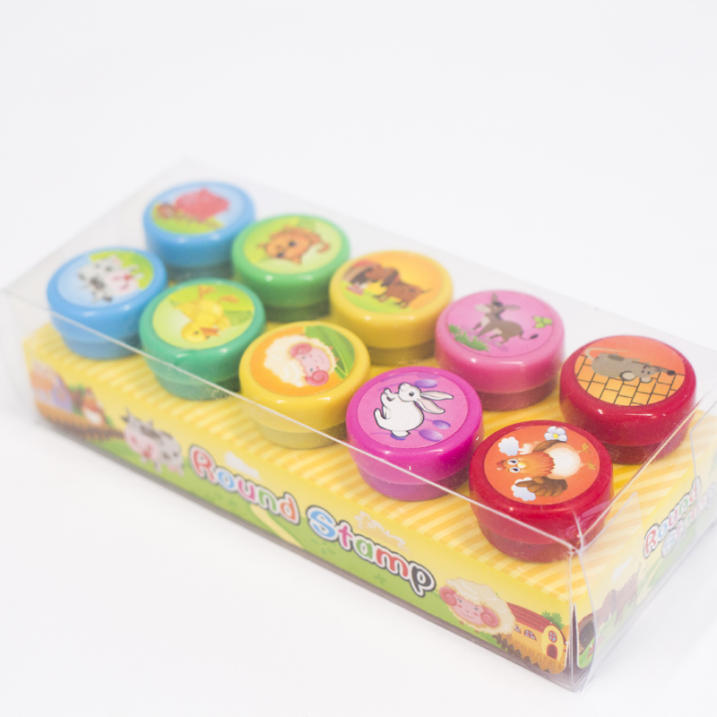 - Bộ gồm 10 con dấu hình động vật khác nhau như: chó, lừa, bò, gà...
