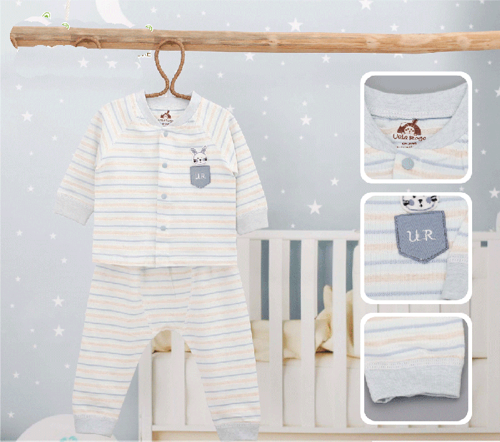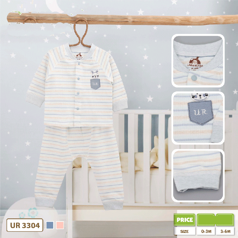 Khi chọn mua đồ cho trẻ sơ sinh ngoài việc để ý đến chất vải thì bố mẹ cũng nên chọn những kiểu quần áo tiện lợi nhất để mặc cũng thay đồ cho trẻ. Bộ dài tay cúc giữa kẻ hình thỏ Uala UR3304 với thiết kế áo cài giữa kết hợp chất vải cotton hữu cơ mềm mại, không chứa chất tẩy trắng, an toàn cho làn da của bé.