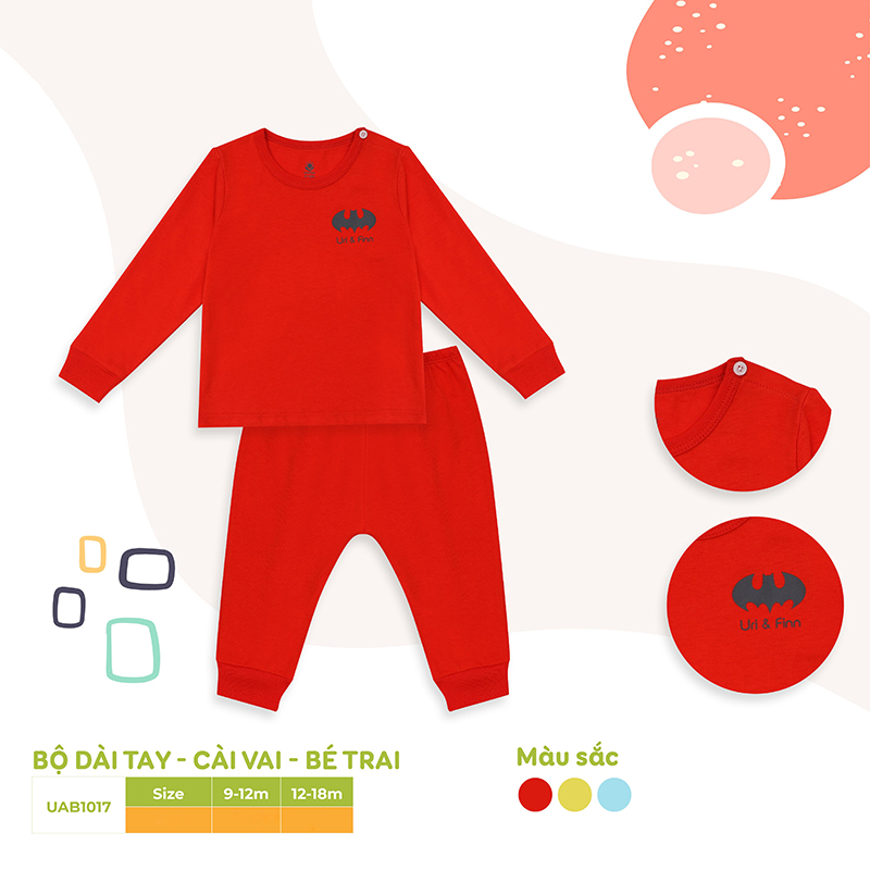 Bộ dài tay cho bé Uri&Finn UAB1017 có 2 màu Đỏ & Vàng cho Mẹ lựa chọn