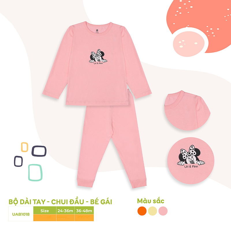 Bộ dài tay cho bé Uri&Finn UAB1018 được thiết kế với họa tiết nhân vật hoạt hình chuột Mickey ngộ nghĩnh đáng yêu ngay phía trước ngực. Bộ quần áo được may từ 100% cotton thiên nhiên có khả năng thấm hút mồ hôi rất tốt, thân thiện và bảo vệ làn da nhạy cảm của bé.