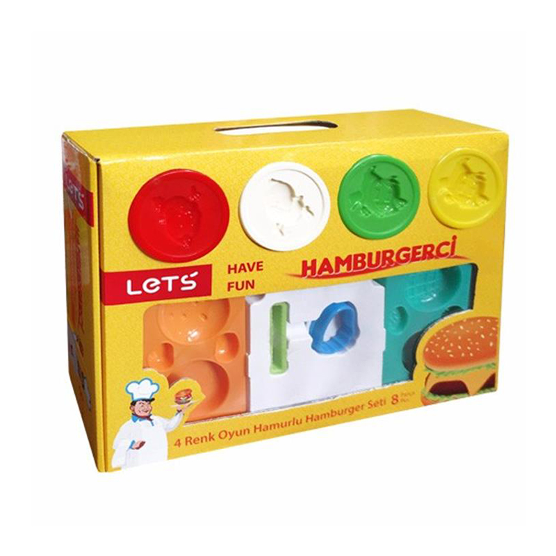 Đồ chơi trẻ em đất nặn bánh Hamburger có 4 hộp đất nặn với những màu sắc tươi sáng và bắt mắt, chẳng hạn như màu trắng tao nhã, màu đỏ nổi bật, màu vàng cá tính và màu xanh lá cây dễ thương, giúp bé nhận biết và làm quen với các màu sắc khác nhau.