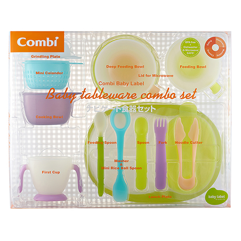 Khi bé bước vào tuổi ăn dặm, trang bị những đồ dùng và dụng cụ chế biến ăn dặm phù hợp là việc làm cần thiết để bé ăn ngon miệng và đúng cách. Bộ đồ ăn tổng hợp Combi 14 món gồm những đồ dùng thiết yếu nhất phục vụ cho thời kỳ ăn dặm của bé, với chất liệu nhựa cao cấp đảm bảo an toàn vệ sinh và màu sắc bắt mắt, chắc chắn sẽ giúp cho giai đoạn tập ăn của trẻ được diễn ra dễ dàng và khoa học hơn.