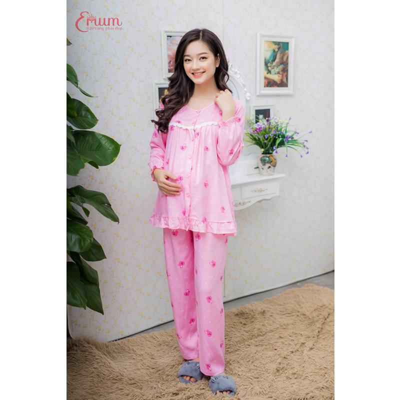Bộ đồ bầu đuổi tơ hồng phấn được may từ vải kate Thái mềm mại, thoáng mát