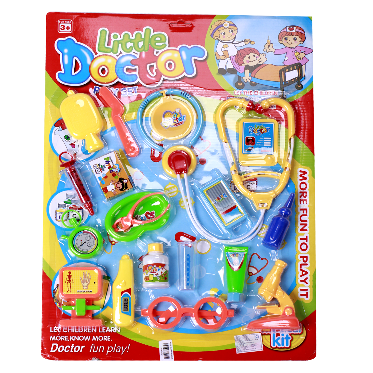 - Bé sẽ rất thích thú với những dụng cụ y tế nhiều màu sắc được mô phỏng theo dụng cụ thật.