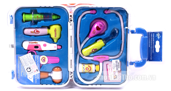 2. Bao gồm đầy đủ các dụng cụ và phụ kiện mà một bác sĩ cần để chữa bệnh như: hộp đựng dụng cụ, thuốc, ống nghe hai đầu hình quả dâu nhìn rất đáng yêu, nhíp, và giọt thuốc, bông thấm, kim tiêm, dao mổ... Đồ chơi phù hợp cho các bé từ 3 tuổi trở lên, các bé có thể chơi cùng bố mẹ hoặc bạn bè
