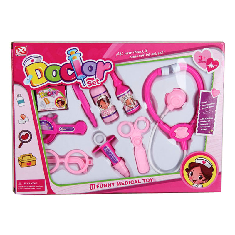 - Hộp đồ chơi bác sĩ bao gồm 11 món : ống nghe, mắt kính, ống tiêm, hộp thuốc...