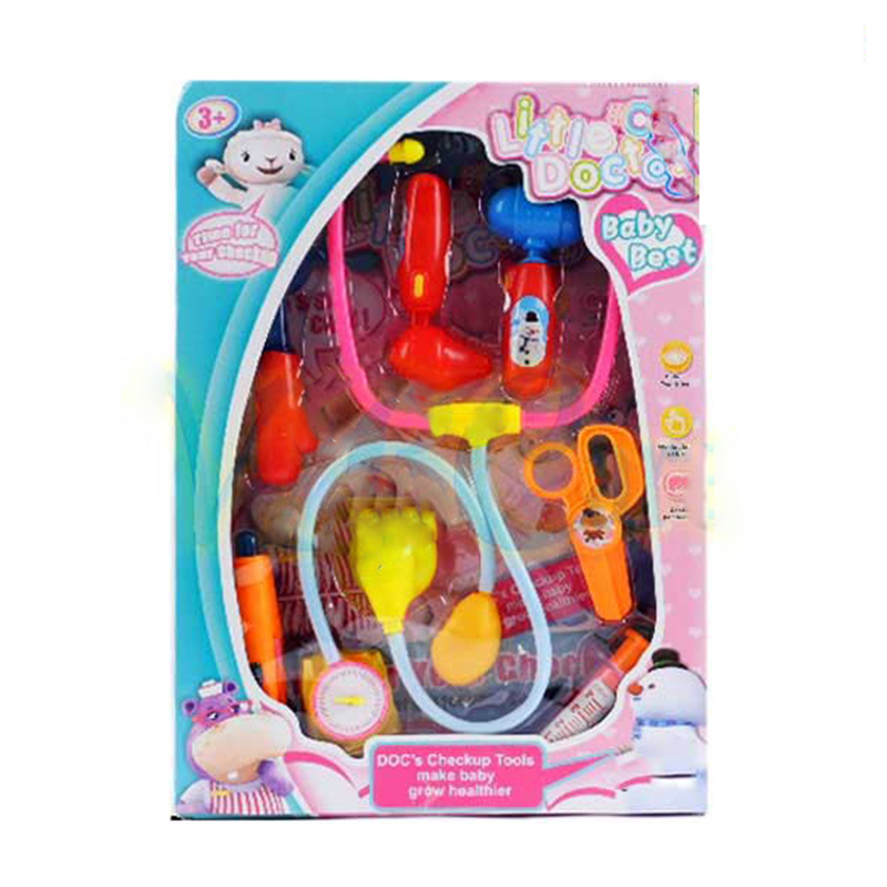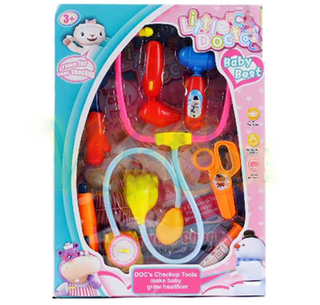- Bộ sản phẩm đồ chơi bác sĩ VBC- 936 bao gồm: ống nghe, mắt kính, ống tiêm, kéo...mô tả giống như các vật dụng bé thường thấy của bác sĩ.