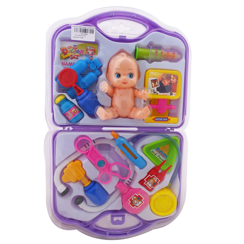 - Bộ đồ chơi bé tập làm bác sỹ giúp bé làm quen với các dụng cụ trong y tế.