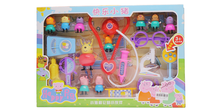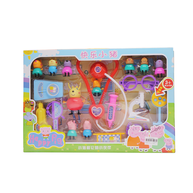 - Bộ đồ chơi mô phỏng theo bộ đồ bác sỹ, bé có thể mở phòng khám để khám bệnh cho các chú lợn