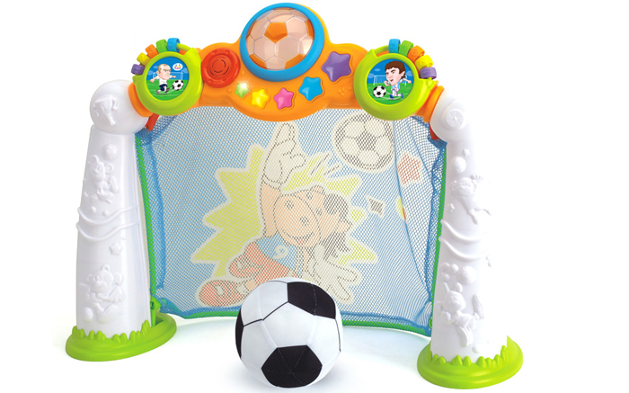 - Bộ trò chơi thiết kế giống như một khung thành có quả bóng đi kèm