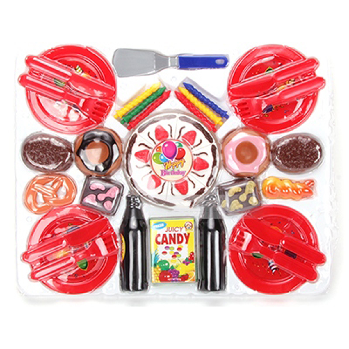 Bộ đồ chơi với đủ các chi tiết như bánh sinh nhật, bánh ngọt, nến, dao dĩa… giúp bé có thể tổ chức các bữa tiệc sinh nhật cùng bạn bè, người thân.