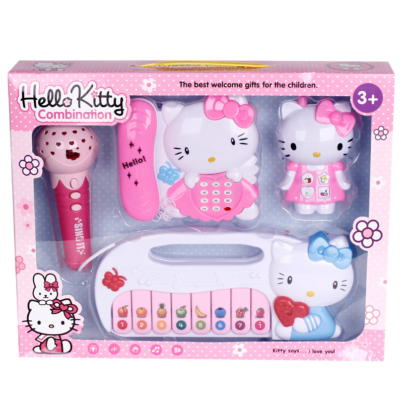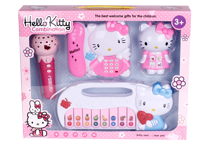 - Bộ đồ chơi âm nhạc gồm: Đàn Hello Kitty, điện thoại phát nhạc cho bé vui chơi và học về Màu sắc, Số, nghe nhạc, 1 mic